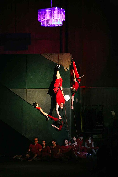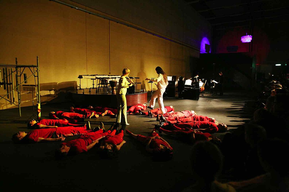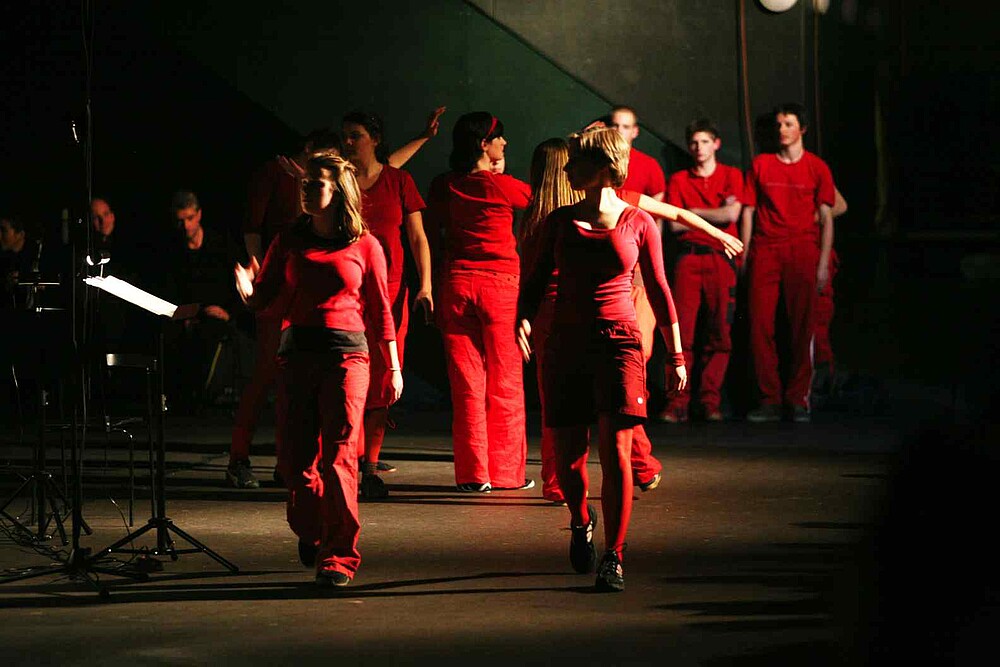 Im Rahmen des Konzerts "Windrose", das am Freitag, 16. März 2007 in der Voltahalle Basel stattgefunden hat, hat die Klasse 2MI eine zehnminütige Eigenkomposition für Stimme und Bewegung uraufgeführt (vgl. Fotos unten). Mit Unterstützung der Choreografin Parwin Hadinia, zweier Musiker des Kammerorchesters Basel und von Christoph Huldi ist ein Stück entstanden, das vor Kagels "Südosten" aus dem Windrosenzyklus von der Klasse gesungen und getanzt wurde. Entstanden ist es im Projektunterricht der 2MI mit Unterstützung von KIS (Kulturelles in Schulen BL), in Zusammenarbeit mit den Basler Educations-Projekten.